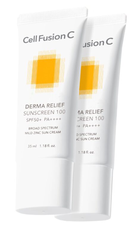 Dermokosmetyki z serii Cel Fusion C to nie tylko silnie nawilżające kremy do twarzy, ale również produkty o dodatkowych właściwościach. Jednym z nich jest zaawansowany krem przeciwsłoneczny Derma Relief Sunscreen 100. Ochrona przed szkodliwym promieniowaniem UV należy do podstawowych elementów codziennej pielęgnacji skóry. Słońce może mieć bardzo szkodliwy wpływ na wygląd cery – nie tylko wysusza, ale również przyspiesza procesy starzenia się i obniża elastyczność skóry. Krem przeciwsłoneczny Derma Relief Sunscreen 100 zapewnia wysoką ochronę przed promieniowaniem UV, a jednocześnie skutecznie nawilża suchą i odwodnioną cerę. Kosmetyk jest polecany również do skóry wrażliwej. Zawarte w nim tlenek cynku oraz ekstrakt z nagietka przynoszą skórze natychmiastowe uspokojenie i poprawiają jej nawilżenie. Aby krem zapewnił skuteczną ochronę, należy nałożyć go około pół godziny przed ekspozycją na słońce i powtarzać aplikację co 2 godziny.